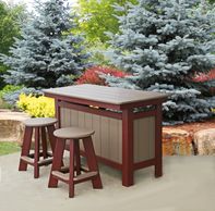 28" x 58" Serving Counter with Round Bar Stools (Weatherwood and Cherry)