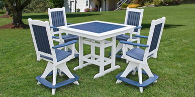 44" x 44" Square Pub Table and Mission Swivel Chairs (Patriot Blue and White)