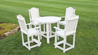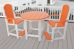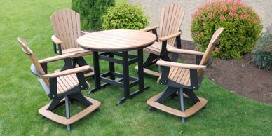 38" Round Pub Table and Adirondack style swivel chairs (Weatherwood and Black)