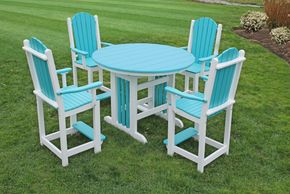 48" Round Pub Table and Fanback Chairs (Aruba Blue and White)