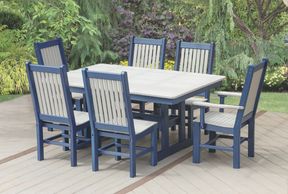 44" x 84" Dining Table and Mission Chairs (Light Grey and Patriot Blue)